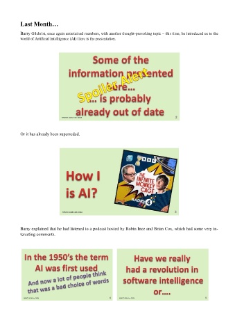 Barry Gilchrist, once again entertained members, with another thought-provoking topic – this time, he introduced us to the