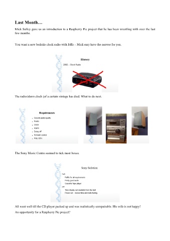 Mick Sulley gave us an introduction to a Raspberry Pie project that he has been wrestling with over the last