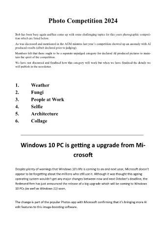 Bob has been busy again and has come up with some challenging topics for this years photographic competi-