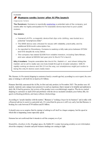 According to “people familiar with the matter,” Humane is “seeking a buyer for its business” and in talks with