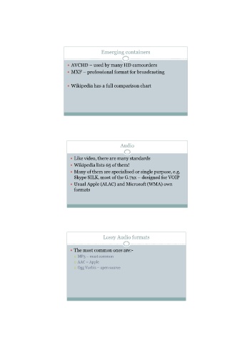 Like video, there are many standards