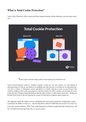 Total Cookie Protection offers strong protections against tracking without affecting your browsing experi-
