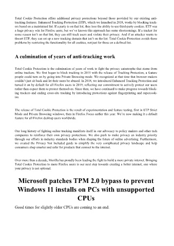 tracking features. Enhanced Tracking Protection (ETP), which we launched in 2018, works by blocking track-