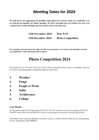 try and put an together for future meeting. We have currently run out of ideas for next year
