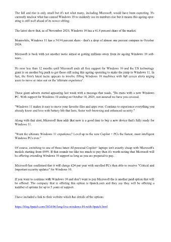 The latest show that, as of November 2024, Windows 10 has a 61.8 percent share of the market.
