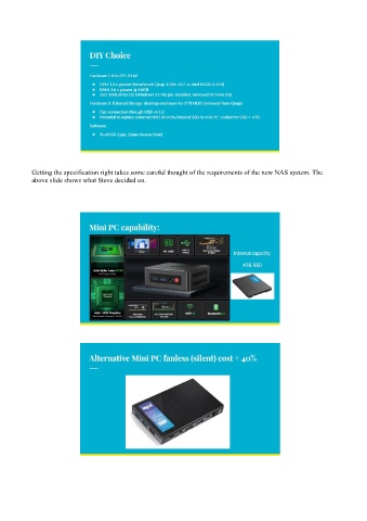 Getting the specification right takes some careful thought of the requirements of the new NAS system. The above slide shows what Steve decided on.