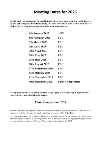 Meeting Dates for 2025