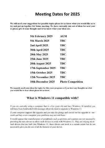 Meeting Dates for 2025