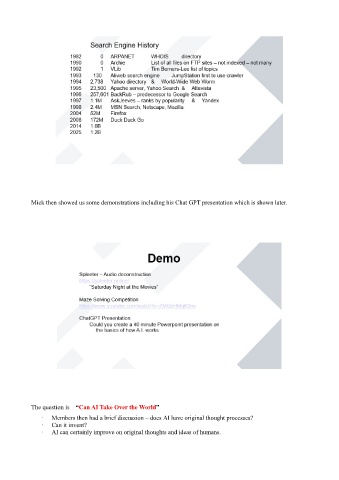 Mick then showed us some demonstrations including his Chat GPT presentation which is shown later.