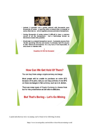 A quick introduction video on mining can be found at the following location https://www.investopedia.com/tech/how-does-bitcoin-mining-work/