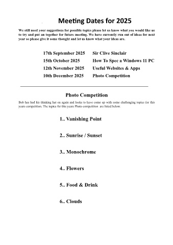 years competition. The topics for this years Photo competition are listed below.