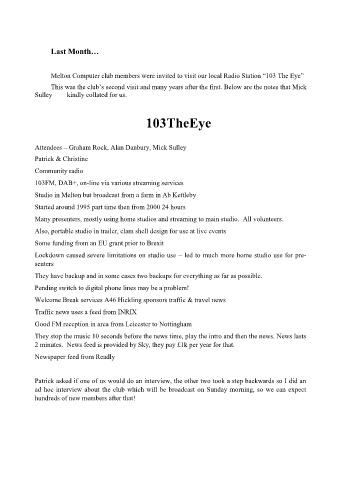 Melton Computer club members were invited to visit our local Radio Station “103 The Eye”