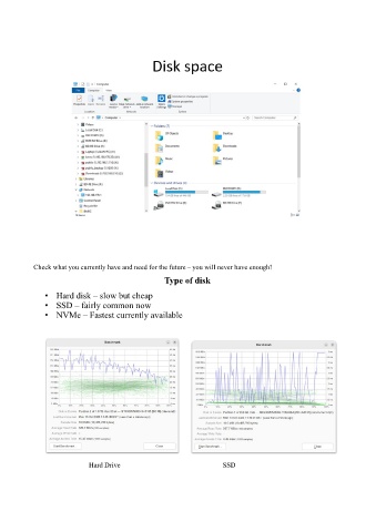 Check what you currently have and need for the future – you will never have enough! Type of disk • Hard disk – slow but cheap • SSD – fairly common now • NVMe – Fastest currently available Hard Drive SSD