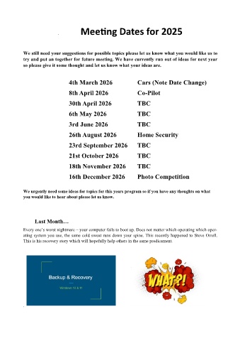 We still need your suggestions for possible topics please let us know what you would like us to