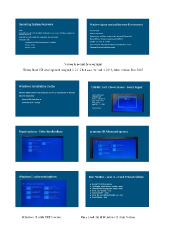 Ventoy is recent development Hirens Boot CD development dropped in 2012 but was revived in 2018, latest version Dec 2025 Windows 11 adds UEFI section Only need this if Windows 11 from Ventoy